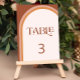 Minimalistisk men slående Boho-design med trendig-typografi och modern bågdesign i terracotta och jordartston. Texten kan lätt vara personlig för en unik och snygg utformning för din speciella dag.