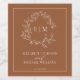 Modern Terracotta Leafy Vapensköld Monogram Bröllo Vinflaska Etikett
