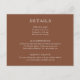 Provide your guests with all the essential wedding information in style with this Modern Terracotta Details Card. Featuring a clean, minimal design with warm earth tones, it pairs perfectly with the Modern Terracotta invitation and RSVP card. Ideal for boho, rustic, or contemporary weddings, this card adds a cohesive, elegant touch to your stationery suite.