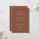 Set the tone for your big day with this modern terracotta wedding invitation, featuring a clean and minimal design with warm earth tones. Perfect for boho, rustic, or contemporary weddings, this elegant invite offers a timeless look that complements any wedding style. Personalize with your details to create a beautifully cohesive and sophisticated stationery suite.