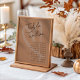 En stilren och modern bröllopsställplan utformad i varma terrakottafärger, med en mjuk handritad hjärtbakgrund för en romantisk touch. Ren, elegant typografi gör det lätt att läsa gästnamnen samtidigt som den bibehåller en raffinerad, modern utseende. Perfekt för boho-, rustika eller höstbröllop, denna sittplan kombinerar funktion och design för att skapa en välkomnande och vacker koordinerad display.