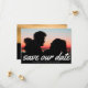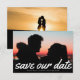 Modern text med flera bilder meddelande Spara datum inbjudan är ett stilrent och elegant fotomeddelande som är ett 2-sidigt kort och har dina foton, anpassat meddelande eller som kan anpassas, elegant skript typografi som säger "Spara datum" . Du kan redigera namnet och detaljerna på framsidan. Du kan också infoga en 2:a bild på baksidan med ett kort meddelande.