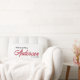 Modern text med vigselparens namn och datum i elfe lumbarkudde