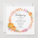 Den här inbjudan till Thanksgiving innehåller en roligt vattenfärg höst löv och pumpkrans, skapar perfekt för en festlig helgdag. Inbjudan är enkel och modern, med vit bakgrund och svart text. Oavsett om du planerar en liten och intim sammankomst eller en stor och livlig firande, är den här Thanksgivingen en perfekt för att ange tonen för din speciella dag.