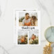Centered between the images is a stylish "thank you" sentiment in a modern, hand-written script. The design includes a delicate heart flourish that seamlessly connects the letters, adding a sweet, romantic touch. Below the script, you can easily personalize the card with the names of the couple and your wedding date in a crisp, professional sans-serif font. Its minimalist white background and black typography ensure it will complement any photography style, from bright outdoor sessions to elegant indoor portraits.