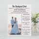 Modern tidningsannons om bröllop precis gifta medd inbjudningar