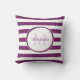 En modern lila och vit tjock rand dekorativ kudde. Anpassa det här smala mönster genom att lägga till ditt namn och en inledande monogrammatisk version. Den här chicens monogramdesign är en del av den Magenta Lila Bedroom Decor Summer Färg Samling.