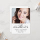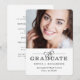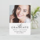 Denna eleganta, uppdaterade svart-vita version av en klassisk examensinbjudan har modern kalligrafi och typografi på vit bakgrund, med en framträdande plats för examenstagarnas foto. All din festinformation hamnar på baksidan.