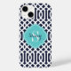 Anpassningsbarnas designade telefonfodral med chic snyggt trellis mönster. Anpassa designen med ditt monogram namn och inledande eller annan anpassningsbar i en preppy quatrefoil ram. Klicka på Anpassa om du vill ändra typsnitt och färg för att skapa en unik design av ett slag!