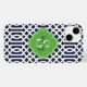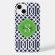 Anpassningsbarnas designade telefonfodral med chic snyggt trellis mönster. Anpassa designen med ditt monogram namn och inledande eller annan anpassningsbar i en preppy quatrefoil ram. Klicka på Anpassa om du vill ändra typsnitt och färg för att skapa en unik design av ett slag!