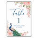 Modern Trendig Akvarell Påfågel Blommor Bröllop Bordsnummer