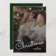 Ett trendigt och stilrent julkort med platt hälsning med modern och handskriven typsnitts typografi i vitt över ett fullständigt foto med svag svart ton.