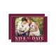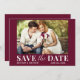 Det moderna Trendiget Spara datumfotokortet med blockskript och calligraphy-skriptkombination. Burgundy