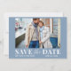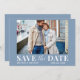 Det moderna Trendiget Spara datumfotokortet med blockskript och calligraphy-skriptkombination. Dusty Blue.