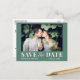 Det moderna Trendiget Spara datumfotovykortet med blockskript och calligraphy-skriptkombination. Grönt av eukalyptus