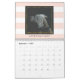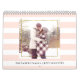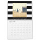 Den här snyggten 2024-kalendern innehåller antingen rosa och vitt eller svart och vitt rand på varannan månad, där du kan välja bild och personlig på varje sida. Ett faux-övertäckningsställe guld ram på varje foto för att lägga till lite glam. Du kan också lägga till ett försättsfoto och välja kalendertitel.