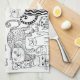 En rolig trendig handritad svart och vit katt dekorativt mönster kökshandduk av Julie Nicholls©.