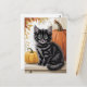 Modern Trendy Halloween Pumpkins and Black Cat Vykort