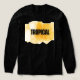 Brighten your wardrobe with the tee-free exclusive "Sun-Drenched Tropical" design. Featuring bold black "TROPICAL" typography set against a dynamic background of layered, translucent yellow geometric shapes, this modern vacation-ready graphic is a summer must-have. Shop high-quality custom prints.