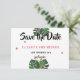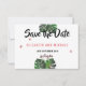 Tema för festival Bröllop spara datum. Med grönt löv med Monsteria löv och rosa blomknoppar. Ett modernt tema för festival som bjuder in din gäst till bröllop. All information är lätt att anpassa till din information. Namn och data del av en bröllop-serie av stationär.