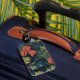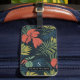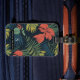 Modern tropiska rödblommor grönt löv bagagetagg i monogram. Anpassa med namn, monogram, inledande text eller text.
