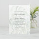 Jag kärlek, sol, stranden, sommargrejen... Fira sommaren bröllop i stil med dessa moderna tropiska tematiska inbjudningar. Med handmålade vattenfärgade monstera löv och grön med vit halvgenomskinlig övertäckning. Bröllop-informationen visas med en elegant serif- och skripttypografi. Återgå till ett kromatiskt grått-fast färg på baksidan.