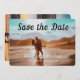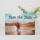 Modern måltavla för den tropiska romantiska stranden i par med manustypografi sparar datumkortet. Anpassa med tre foton, ett på framsidan och två på baksidan. Underbar design från TLS-design.