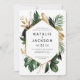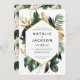 Modern tropisk abstrakt/bladmålad bröllopsinbjudan. En del av en modern bröllop-samling.
