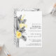 Denna moderna tropiska bröllopsmottagning inbjudan är perfekt för din sommar boho destination bröllop. Designad med klassiska eleganta gula blommor som sticker ut från grå kustgrönska, inklusive palmblad och ormbunke. Med alla dessa färgglada akvarellblommor och grå blad är du säker på att ha den bohemiska strandkänslan du söker.