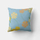 Tropiska kuddar med ljusblå bakgrund, gult och orange blommor.