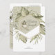 Modern save the date-kort har en förgylld ram dekorerad med tropiska palmblad. Kontakta mig om du behöver hjälp med namn som passar inom ramen eller om du behöver kompletterande artiklar.