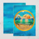 Modern tropisk persiko-Träd-solnedgång i Handflata Anteckningskort