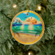 Modern tropisk persiko-Träd-solnedgång i Handflata Julgransprydnad Keramik