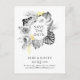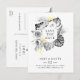 Detta moderna tropiska spara datum brevkort är perfekt för din sommar boho destination bröllop. Designat med klassiska eleganta gula blommor som sticker ut från grå kustgrönska, inklusive palmblad och ormbunke. Med alla dessa färgglada akvarellblommor och grå blad är du säker på att ha den bohemiska strandkänslan du söker.