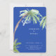 Bröllop spara datum. Cobalt Blue. Tropiskt. Foliage. Modern teckensnitt. Modern design. Rundade hörn.