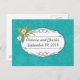 Modern turkos Teal Blue Damask Blommönster Rosa Coral Blommigt Bouquet Bröllop spara datum