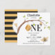 En vacker flicka som vrider One Födelsedagsfest inbjudan med en fantastisk bikupa, inklusive en bikuphängare av träd, vackra bikupor Personliggör detta vackra födelsedagsfest inbjudan med uppgifter om flickans namn och party, t.ex. datum, tid, plats, adress och osa om det behövs. Baksidan av inbjudan har en vacker bimedallion med modern svart och gult rand