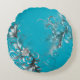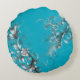 Modern Turquoise Blue with Ornate Silver Round Pillow
