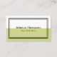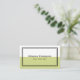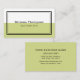 Den moderna formateringen framhäver affärskortet i anpassningsbarna i två färg-tonsblock. Färg innehåller grön och vit kalk med kontrasterande svart text och en dubbla ram som omger texten. Denna mångsidiga utformning är ett fantastiskt val för många yrken. Anpassa textmallen på båda sidor av det här kortet med dina uppgifter.