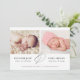 Detta moderna minimalistiska födelsetal är designat för två nyfödda. Kortet innehåller två stora foton av dina nya glädjesamhällen. Lägg till namn och födelsestatus under bilder i ett enkelt och modernt brev. En söt ampersand placeras mellan de två namn. Längs grund kan du lägga till deras födelsedag och namn. Kortets baksida kan anpassas helt - du kan ändra neutraltens ljusbakgrund för grått, lägga till fler foton och bifoga en anteckning om anpassningsbarna till nära och kära.