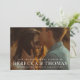 Ett Modern Photo Bröllop spara datum med elegant namn och ett utfallsfoto av fullt vågrät. Klicka på knappen Redigera om du vill anpassa designen med ditt personliga foto och information. Samordna ytterligare inbjudan och bröllopsdag av objekt med den här utformningen genom att besöka Stacey Meacham Modern Overlay Bröllop Collection.