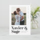Ett modernt foto sparar datumdesignen av Stacey Meacham med fet par namn och porträtt fotoöppning. Ett underbart sätt att tillkännage ditt kommande bröllop och ange temat för ditt evenemang.