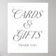 Moderna kort och presenttecken från bröllop med texten "Kort och gåvor" i eleganten med svart typografi stil: en kombination av kalligrafi och serif-bokstäver. Anpassa svarta och vita bröllop-kort och presenttecken med ett kort-tack eller en anpassningsbar. De enkla kort- och presentkorten i bröllop är perfekt för bröllop, dusch i par, förlovningsfest, babydusch, födelsedagsfest eller speciella evenemang.