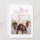 Roligt, modern Glad påsk-hälsningskort personlig med ditt foto och namn. Skapat med handmålad kanal öron och hand plockade typografi som lagts över med roligt vår mönster. Originalkonst av Leslie Larson.