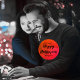 Modern Happy halloween-typografi på ett rött måne på en mörk kväll, väldigt läskigt matchande för Halloween-säsongen. Anpassa ditt namn eller din familj namn.