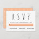 I OSA kort i elegant bröllop visas en modern typografisk design med ett litet persikofuz. Kombinationen av svartvit typografi och persikoaccenter skapar ett sofistikerat utseende. Den OSA texten presenteras i ett charmerande, handritat stil-typsnitt, ge det en contemporary känns, medan persikobandet lägger till ett dynamiskt stänk om färg till den övergripande utformningen. När du vrider över kortet visas ett vitt geometriskt mönster mot en persikobakgrund. Det som skiljer den här designen åt är möjligheten att anpassa texten, texten storlekt, teckensnittet och till och med skuggan av den persika som används, vilket gör att du kan anpassa kortet efter dina personliga önskemål och skapa ett bröllop OSA av typen "one-of-a-natura" som perfekt återspeglar stil och smak.