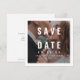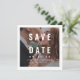 Modern typografi sparar datumdesignen, med ett pars foto, enkla och elegant. Underbara små foton sparar datumkort för moderna bröllop och andra evenemang.