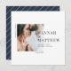 Modern fotokort för klassens typografi, bröllop spara datum. Med modern elegant, typografi och strimlad bakerdesign.