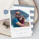 Fira i stil med dessa moderna och mycket trendig bröllop spara datum-kort. Utformningen är enkel att anpassa med din egen formulering och din familj och dina vänner blir glada när de får dessa fantastiska spara datumen. Matchande objekt finns i samlingen.