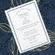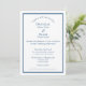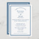 Den klassiska elegansen av blått och vitt har uppdaterats i den här moderna versionen av bröllopsinbjudan som användor "Tillsammans med deras familjer"-öppningen. Bakgrunden är vit och texten djup, rik dammblått i modern kontrasterande serif och sans serif noncursive typsnitt. Samtidigt som typsnitt och formuleringen moderniseras fortsätter de traditionella aspekterna. Ord är utskrivet - inte förkortat. Parets namn omfattar först, mitten och sist. Den här versionen är klar eller kan förkortas för att passa din händelse. "Mottagning att följa" kan redigeras eller tas bort. Du kan redigera eller ta bort osa om du föredrar att använda ett visitkort. För ett avslutat utseende, ett band av samma rik blå ramar inbjudan till synlig dragningskraft. Baksidan är blå med det vita ram. Använda som det är, eller omvandla till ett foto inbjudan genom att lägga till ett foto av möhippan par. Minneshögtid dina moderna nuptialer samtidigt som du bibehåller traditionsgrenar med en klassisk och elegant bröllopsinbjudan.